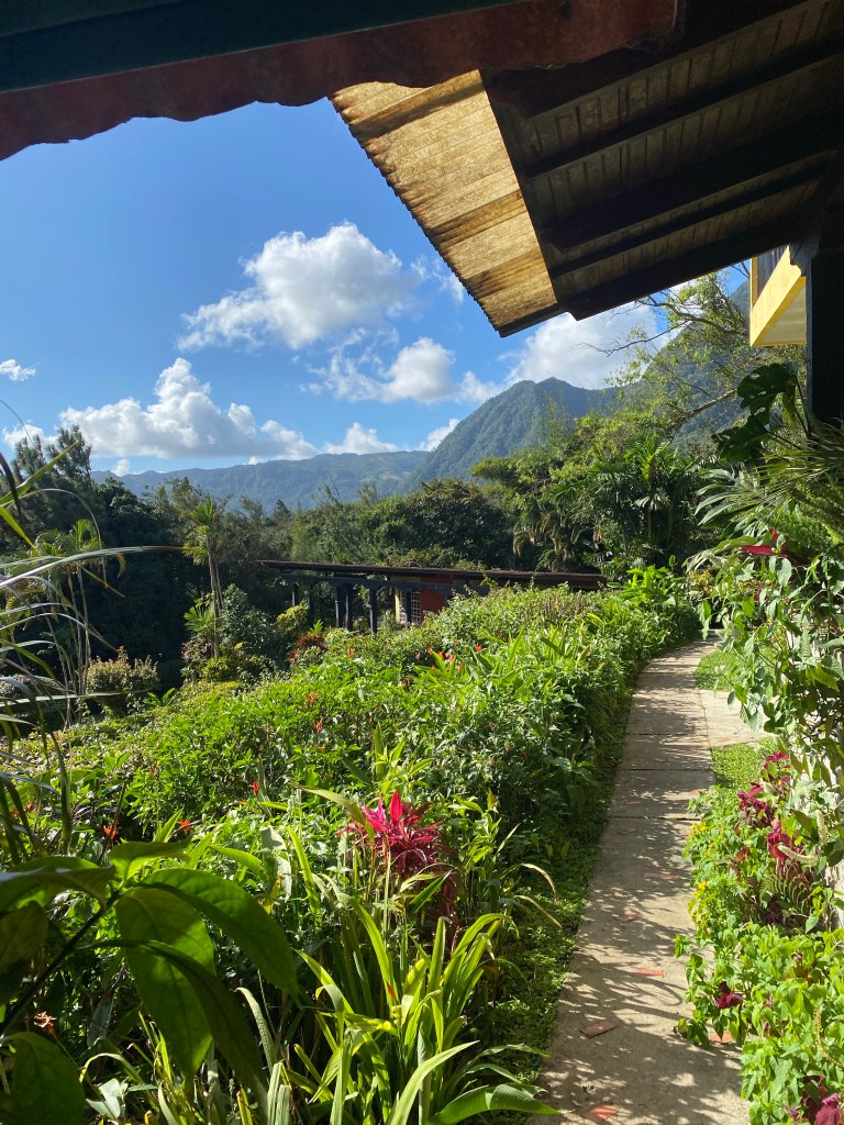 I booked a “family house” at the Golden Frog Inn and it was every bit of exotic. As you can guess frogs are huge in Panama. Massive. I give 5 stars at this spot for the views and amenities; not for luxury. There wasn’t a spa or a gym but there was a gorgeous mountain view, outdoor porch eating with excellent Panamanian fixings, bikes to ride for free and a pool!